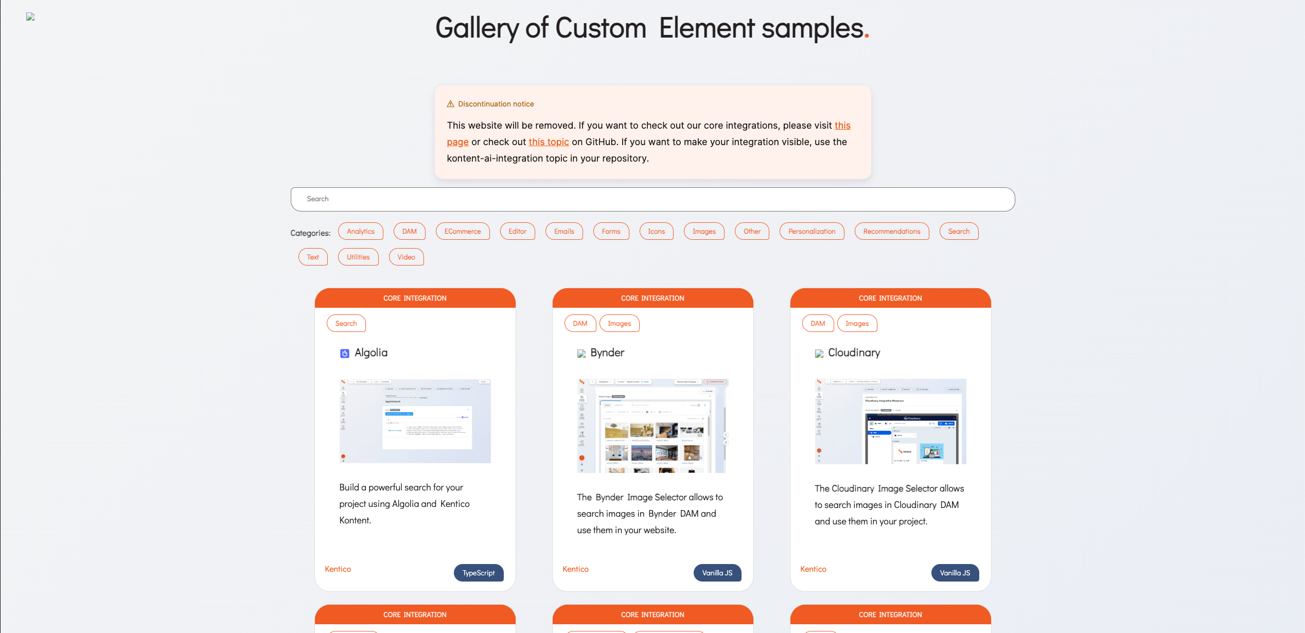 - List of Curated Integrations: Curated and maintained integrations that ensure a higher level of maintenance from Kontent.ai DevRel team.
